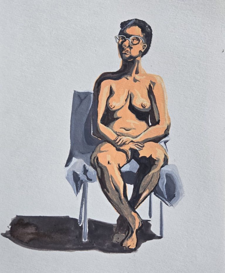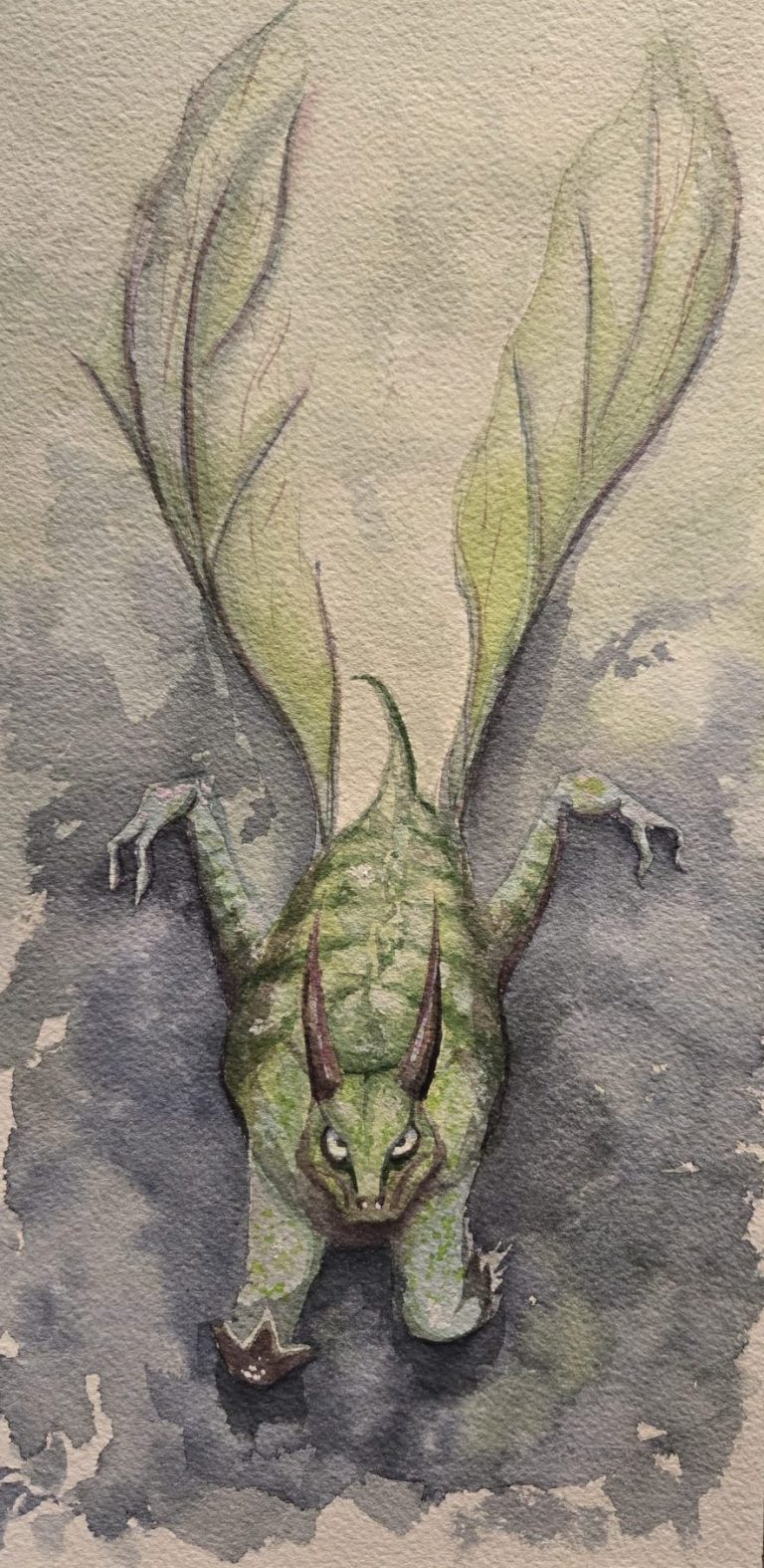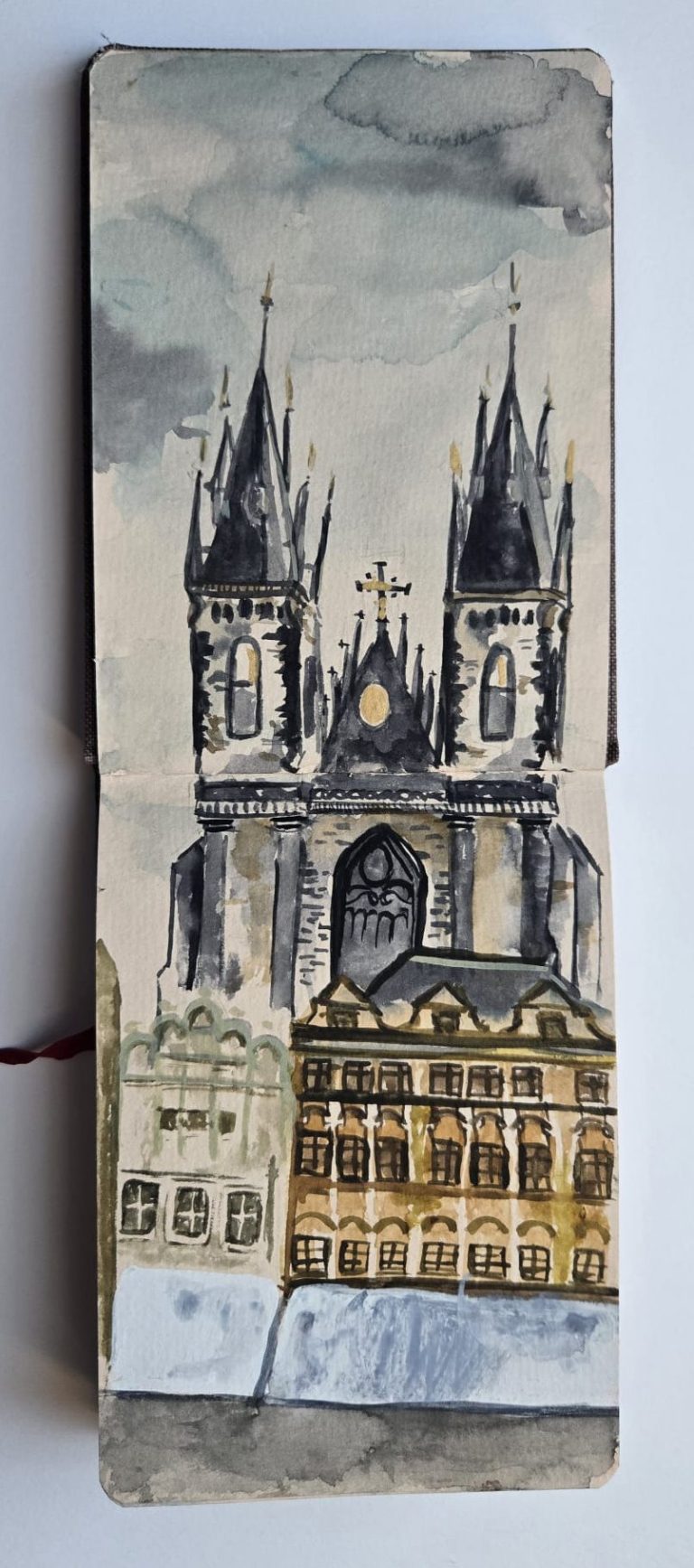 Geïnspireerd op het huis van mijn buren. De achtergond is gemaakt van gouache.